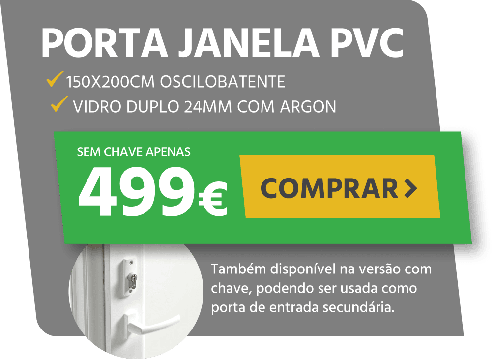 A porta exterior em PVC com vidro duplo transparente é uma solução prática e funcional para quem procura uma porta de entrada luminosa, com bom desempenho térmico e manutenção reduzida.